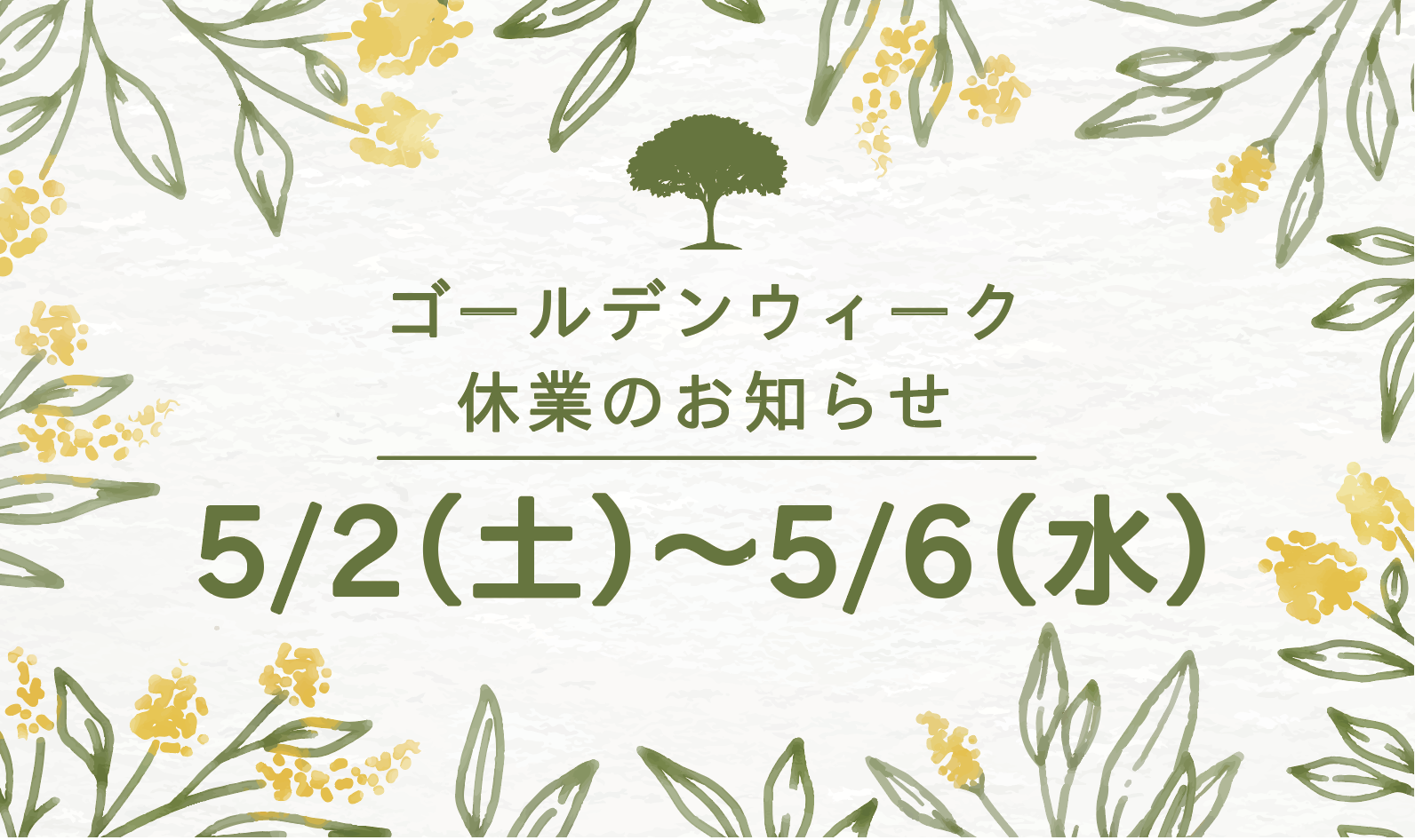 ゴールデンウィーク休業のお知らせ 休業のご連絡 2026.04.20 5/2(土)〜5/6(水)上記の期間中、弊社のゴールデンウィークの休業日とさせていただきます。 ※配送に関しまして※連休中の配送は、荷物増加の影響により大変混み合うため、着日指定の配達が確約出来ない可能性がございます。予めご了承ください。また、出荷日に関しまして、・5月1日(金)ご注文分→5月7日(木)出荷・5月2日(土)~5月7日(木)ご注文分→5月8日(金)出荷となります。ご不便をおかけしますが、何卒よろしくお願い致します。